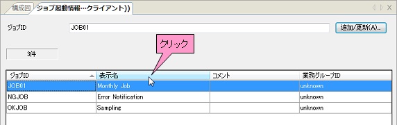 ソートのキーにしたい項目の項目名をクリックしてください。