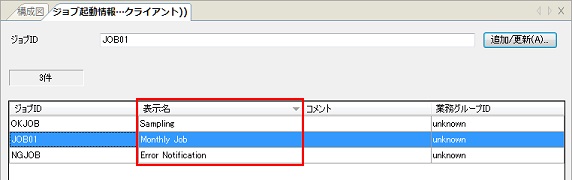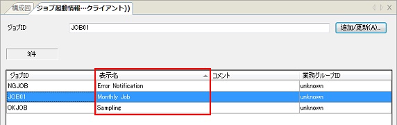 以下ではジョブ起動情報選択画面を例に説明しますが、他の一覧画面でも同様の操作です。