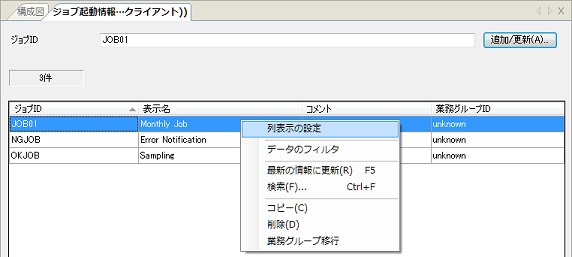 以下ではジョブ起動情報選択画面を例に説明しますが、他の一覧画面でも同様の操作です。