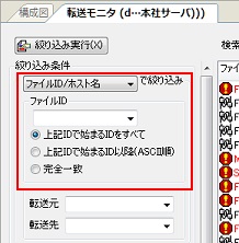 「IDの検索方法」で“ファイルID/ホスト名”を選択した場合、入力したIDと転送履歴のファイルIDが比較されます。