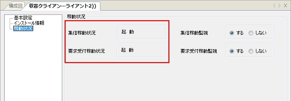 [稼動状況]に現在の情報が表示されます。この例では、目的のクライアントが停止状態から復帰したことを示しています。