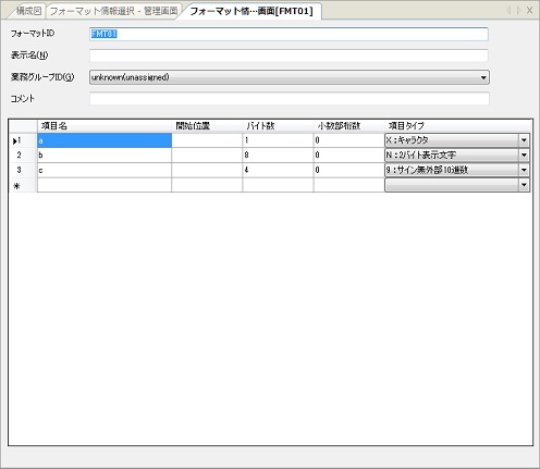 フォーマット情報選択画面とフォーマット情報更新画面についてはフォーマット情報の設定を参照してください。