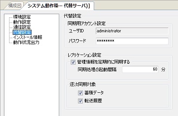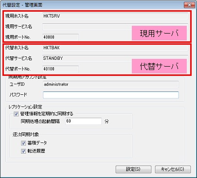 | 【注意】 | 代替サーバに既存の管理情報が存在した場合、代替サーバの指定のタイミングで管理情報はクリアされます。 |