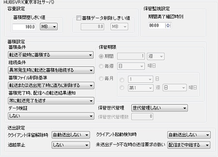 | 容量設定のチェックボックス | 蓄積データに関する設定項目を設定するかどうかを表示および設定します。 | |