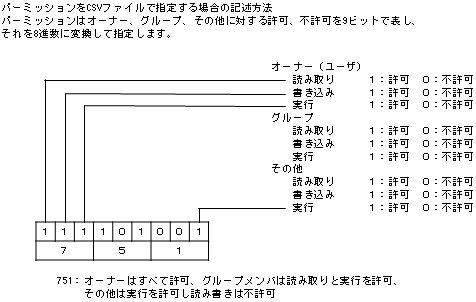 ファイルの読み、書き、実行の許可モード