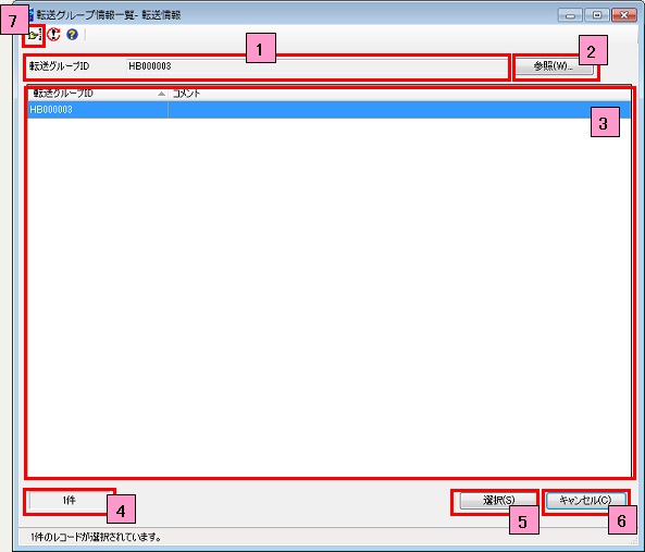 転送グループ情報一覧画面を閉じ、転送グループ情報一覧で選択した転送グループIDを転送情報画面の転送グループIDに設定します。