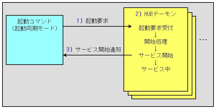 HUBデーモンは、起動が完了し、サービスが開始された旨を起動コマンドに通知します。起動コマンドはこの通知を受け取って終了します。