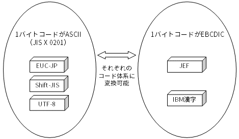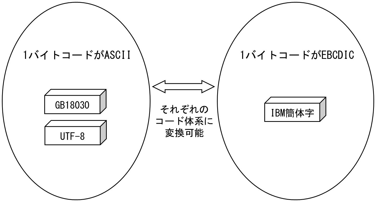 EBCDIC系コードセットでは、1バイトコードにEBCDICの文字コードを使用します。
