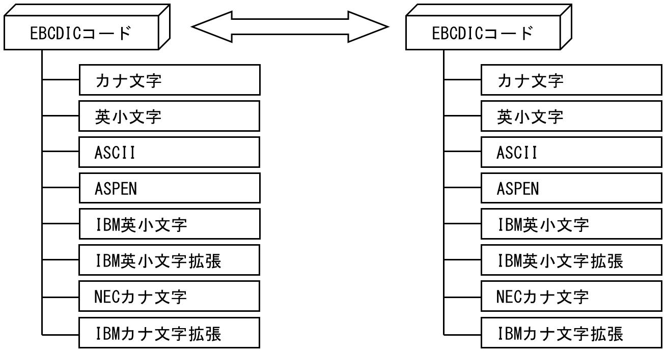 図1.8 EBCDIC ⇔ EBCDICのコードセット間の変換図(日本語コードセット変換の場合)