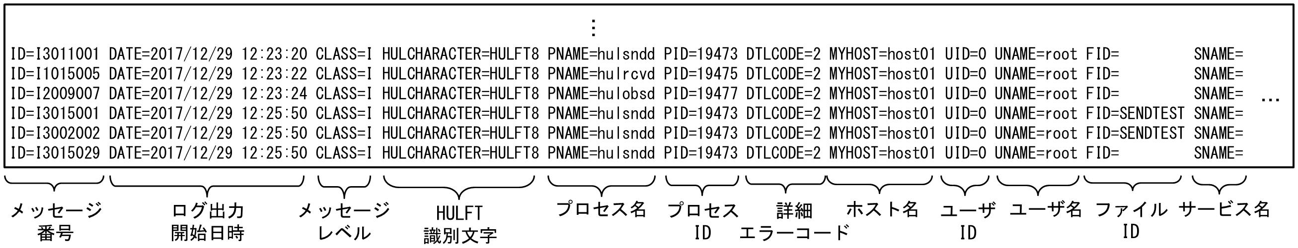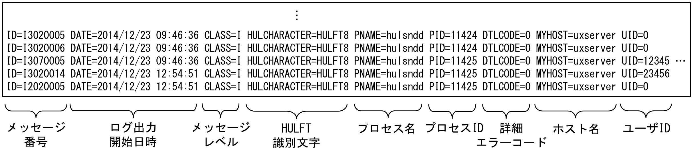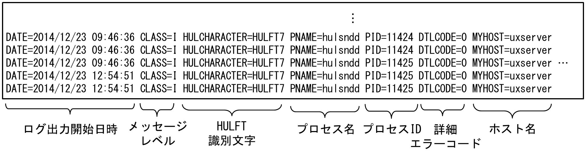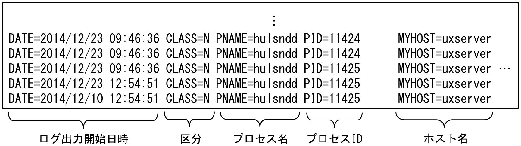 システム動作環境設定に設定したトレース出力バージョン(tlogver)に応じて出力される内容が変わります。