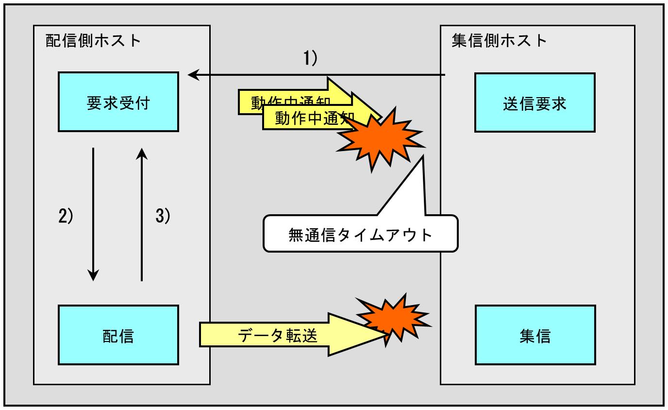 配信処理中または集信処理中は、それぞれ自ホストに設定されている無通信タイムアウトを採用し、ネットワーク異常を検知します。