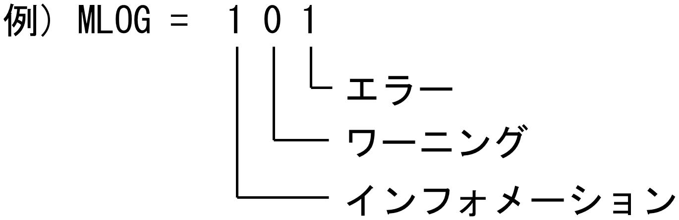 各桁の数値が“1”の場合は対応するメッセージレベルのメッセージをメッセージログに出力し、“0”の場合はメッセージログに出力しません。