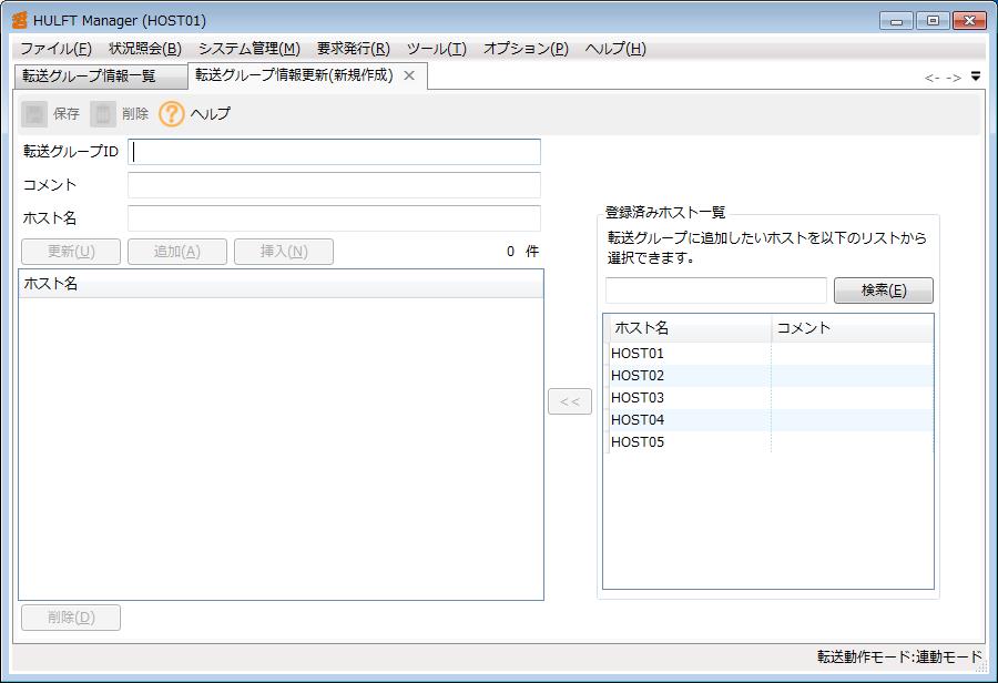 以下に、転送グループ情報を新規作成する手順を示します。