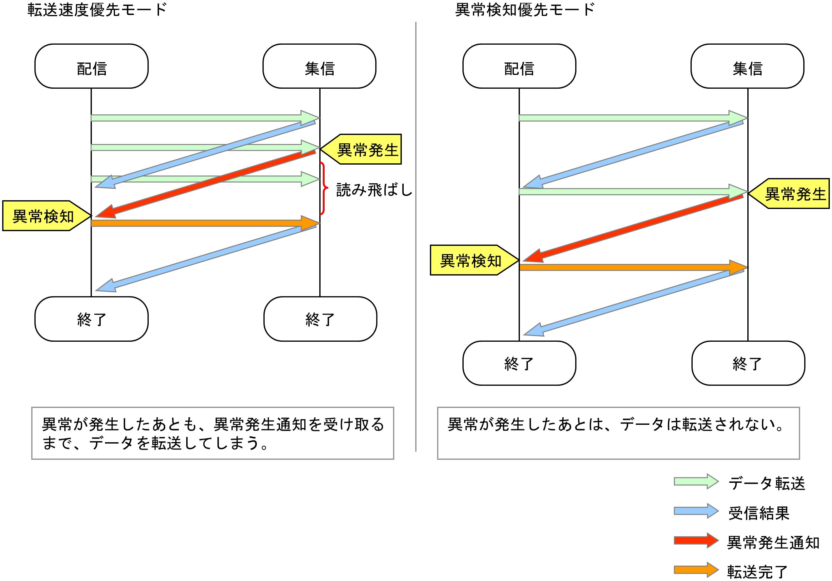 転送速度優先モードと異常検知優先モードの違いを以下の図に示します。