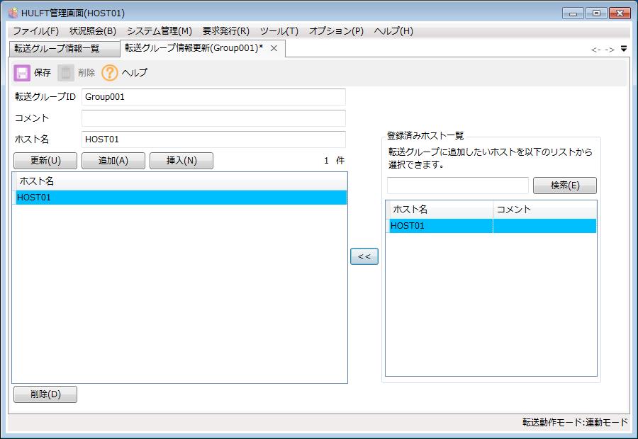 HULFT管理画面から転送グループ情報を登録する手順は以下のとおりです。