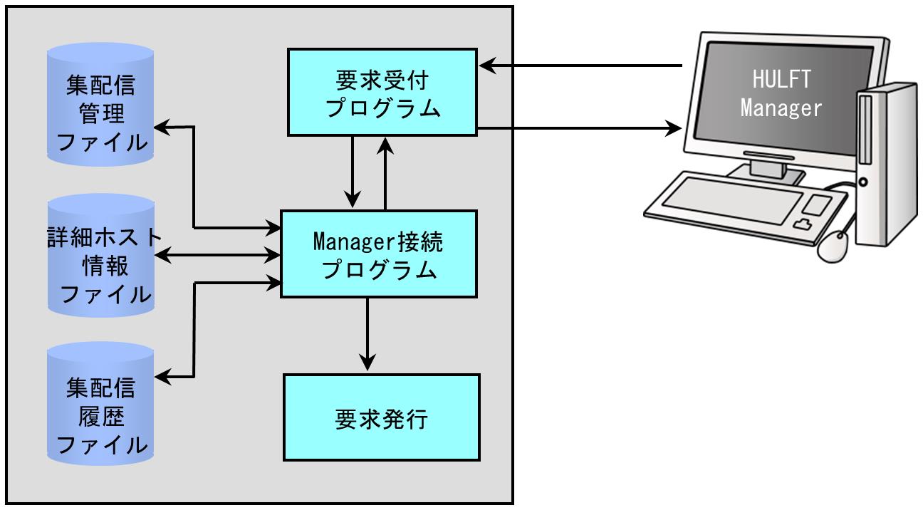リモートのパソコンからHULFT Managerを利用して以下の操作を行う場合、マネジャー接続プログラムが要求を受け付けます。