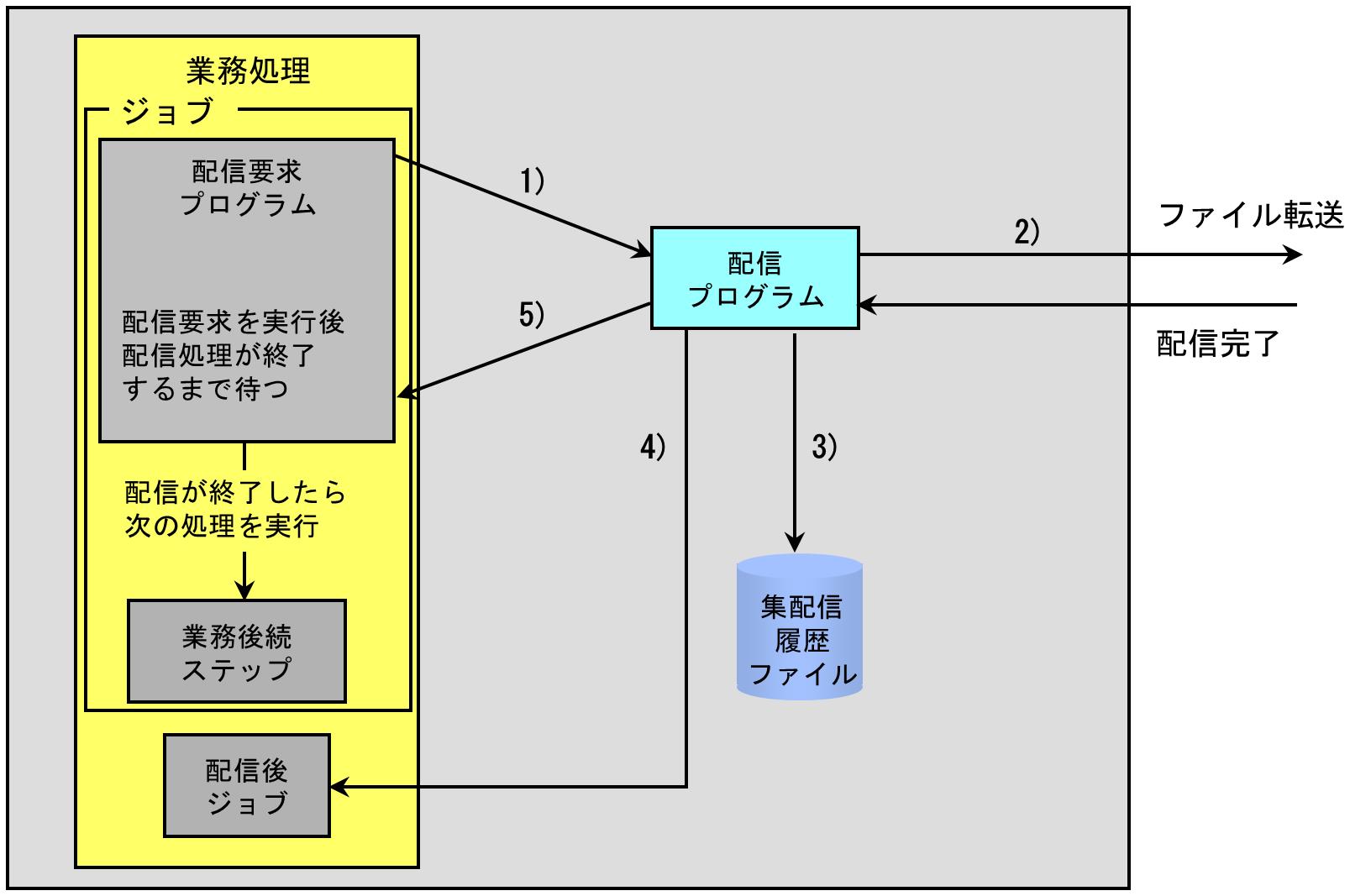 配信要求プログラムは、配信プログラムに配信を指示し、配信処理が終了するまで待ちます。