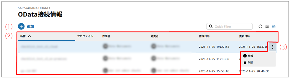 > SAP S/4HANA ODATA > OData接続情報を選択すると表示されます。