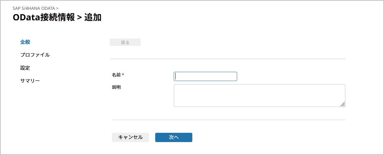このメニュー項目を選択した後に表示される画面については、OData接続情報> OData接続情報名を参照してください。