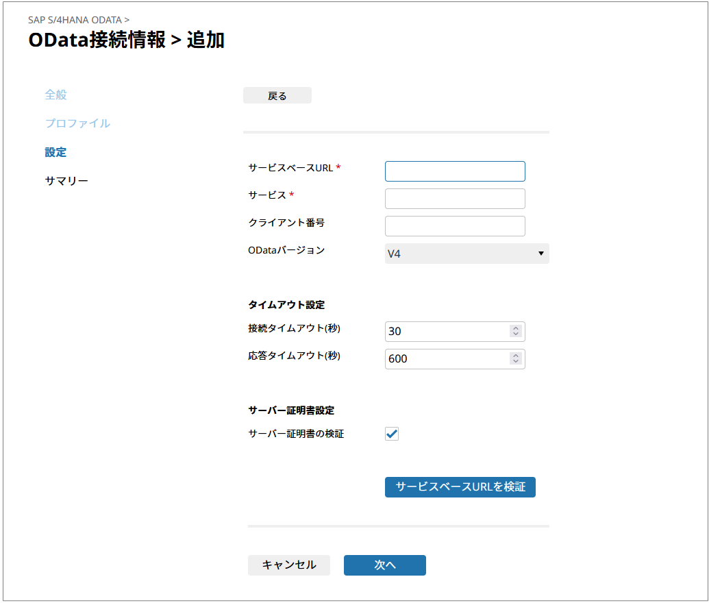OData サービスへのコネクションを作成します。作成したコネクションリソースは、SAP ODataコネクターで使用します。