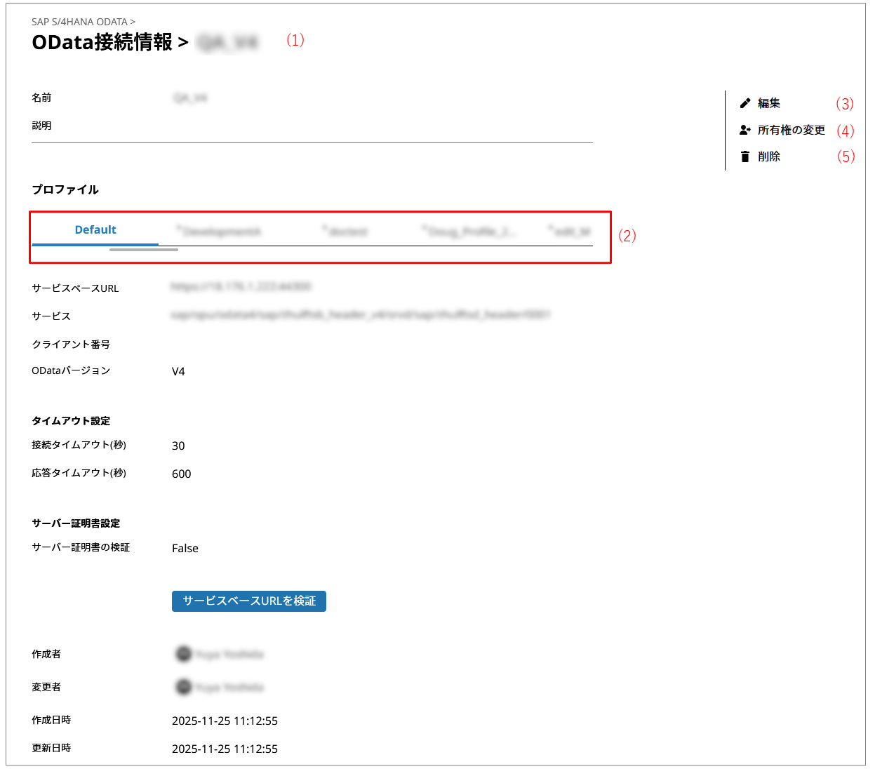 選択中のOData接続情報に関する詳細情報が表示されます。