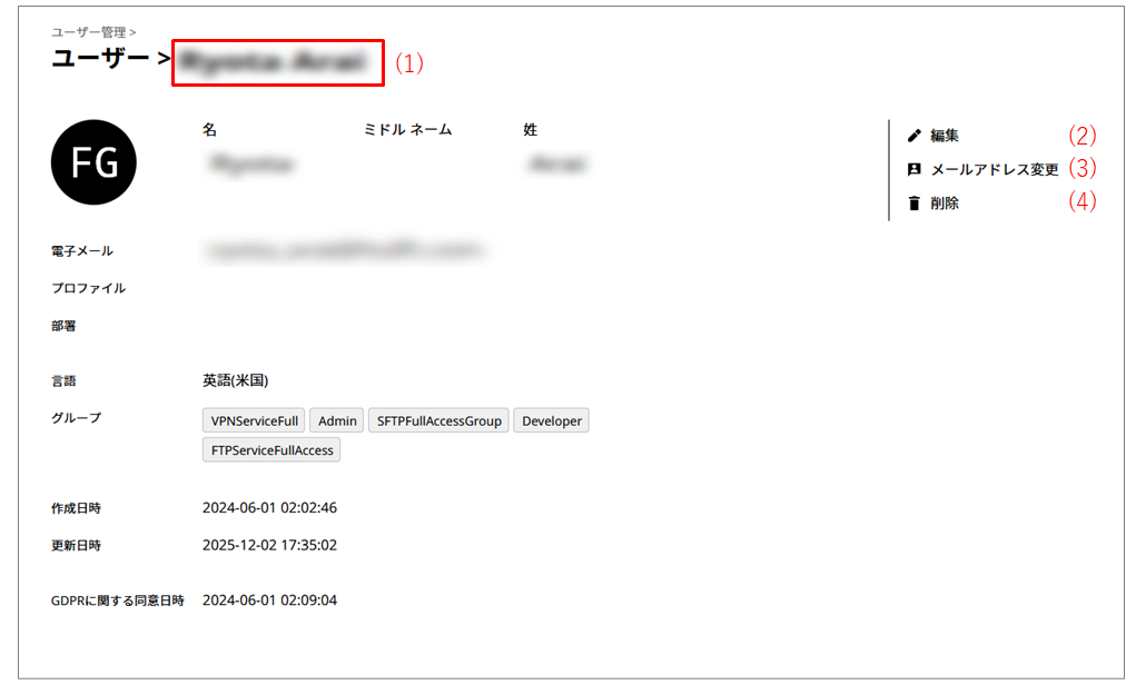 > ユーザー管理 > ユーザーを選択すると、このページが表示されます。