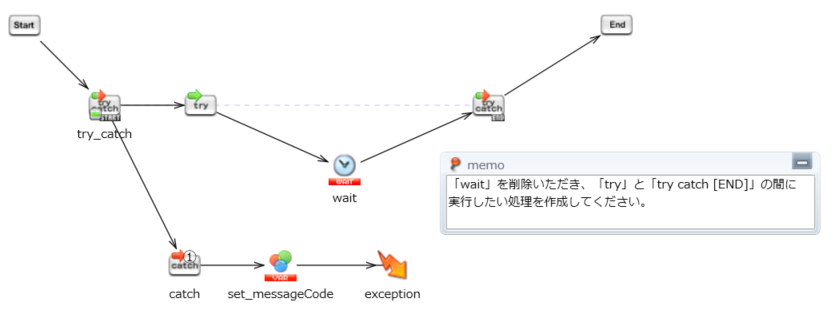本処理はサンプルのため、waitアイコンを実行したい処理と入れ替えて利用してください。