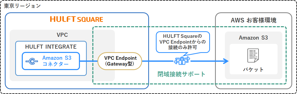 VPC Endpoint経由のAWS内部ネットワーク通信網を利用したAmazon S3への接続が、新たにサポート対象となりました。通信が AWS 内部ネットワークで完結するため、外部経路を通らずに高いセキュリティと安定した通信品質を確保できます。機密性の高いデータを扱うシステム連携や、金融・公共領域などで求められるネットワーク制約にも対応可能となります。