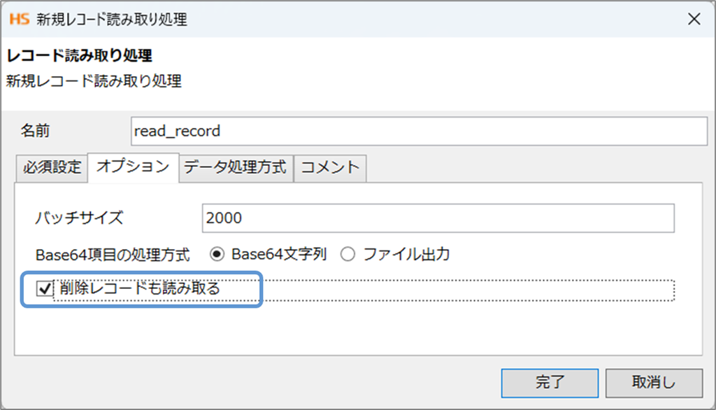 設定画面のオプションから「削除レコードも読み取る」にチェックを入れることで、Salesforce上で削除されたレコードも含めて取得し、同様に扱うことができます。