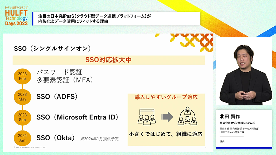 弊社の北田から、DXの実現においてなぜデータ連携が重要なのかについて、およびHULFT Squareの新機能についての紹介をさせていただきました。